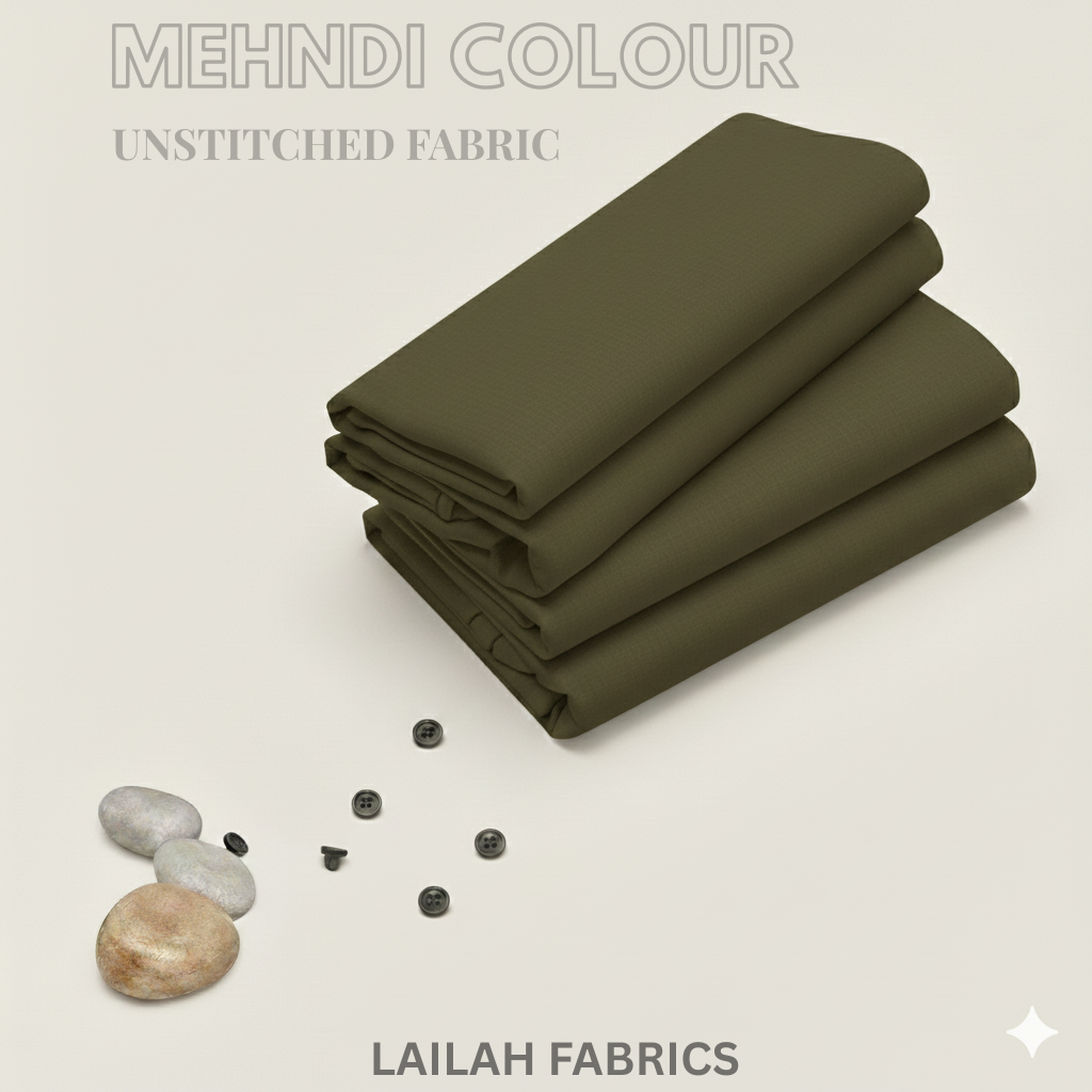 Command attention with the Mehndi Colourย Blended Wash & Wear Fabric (Four season)ย fromย Lailah Fabrics. Crafted with premium quality, this fabric delivers the perfect blend ofย luxury, durability, and effortless elegance, making it an essential choice for the modern man. Suitable for all the seasons.